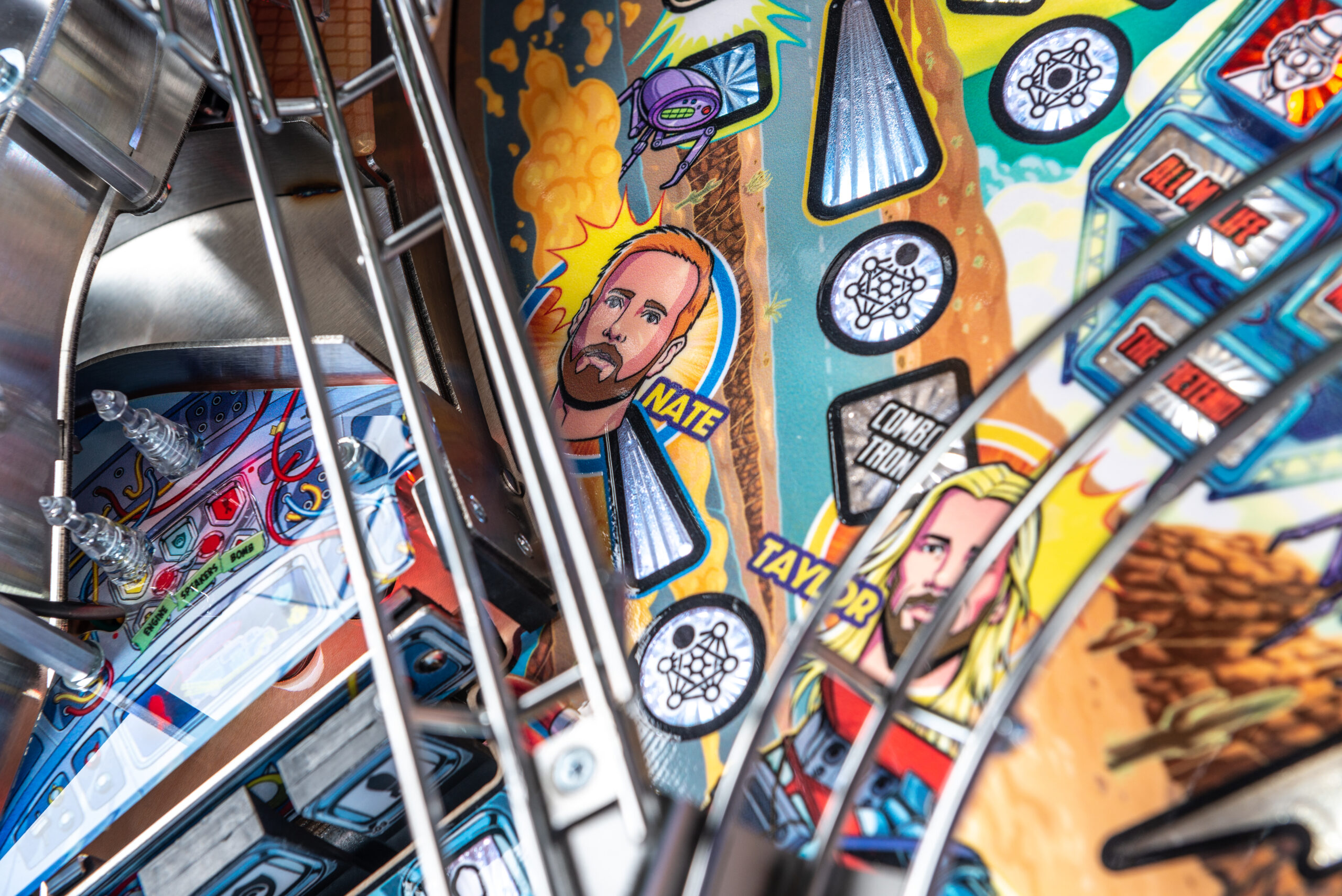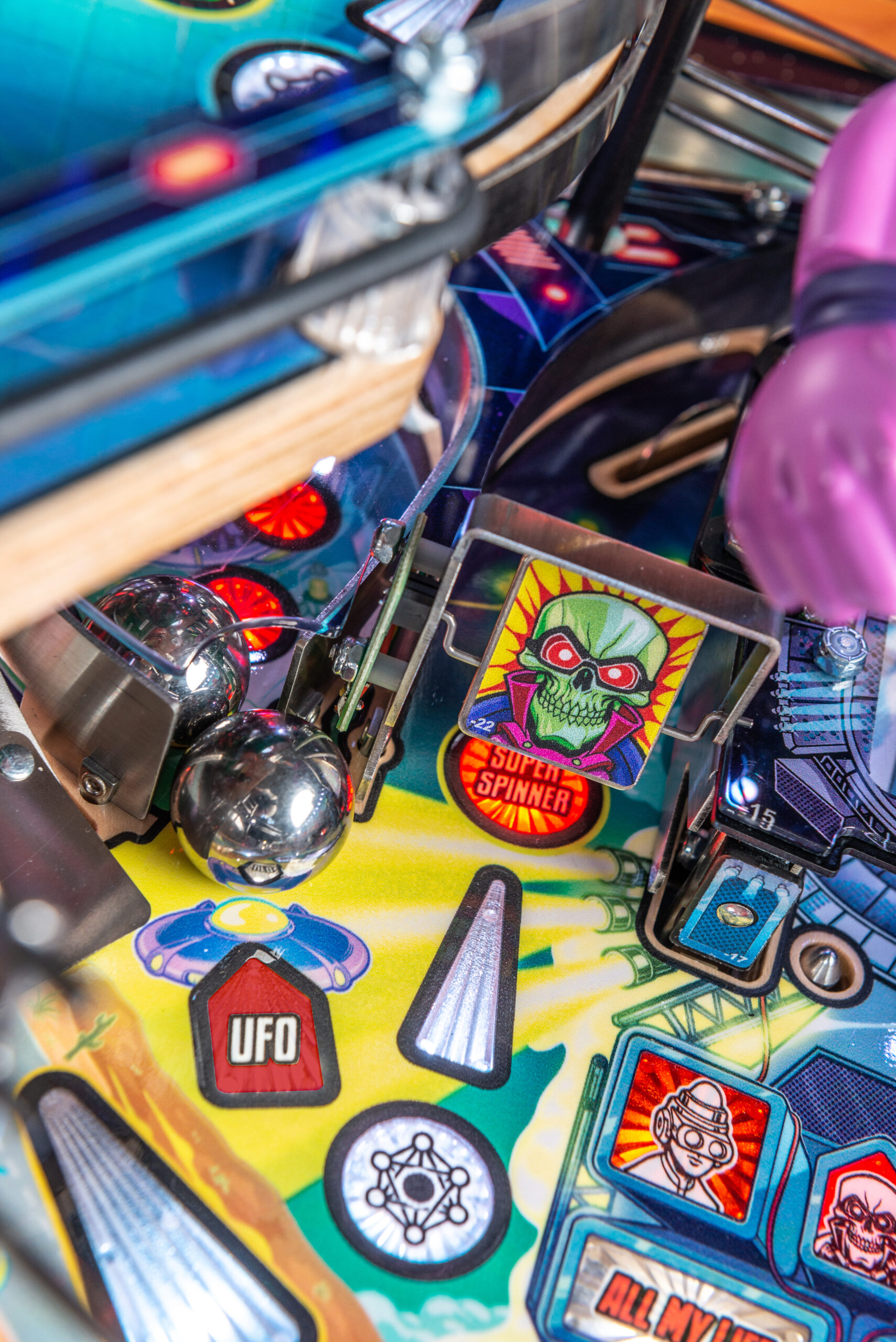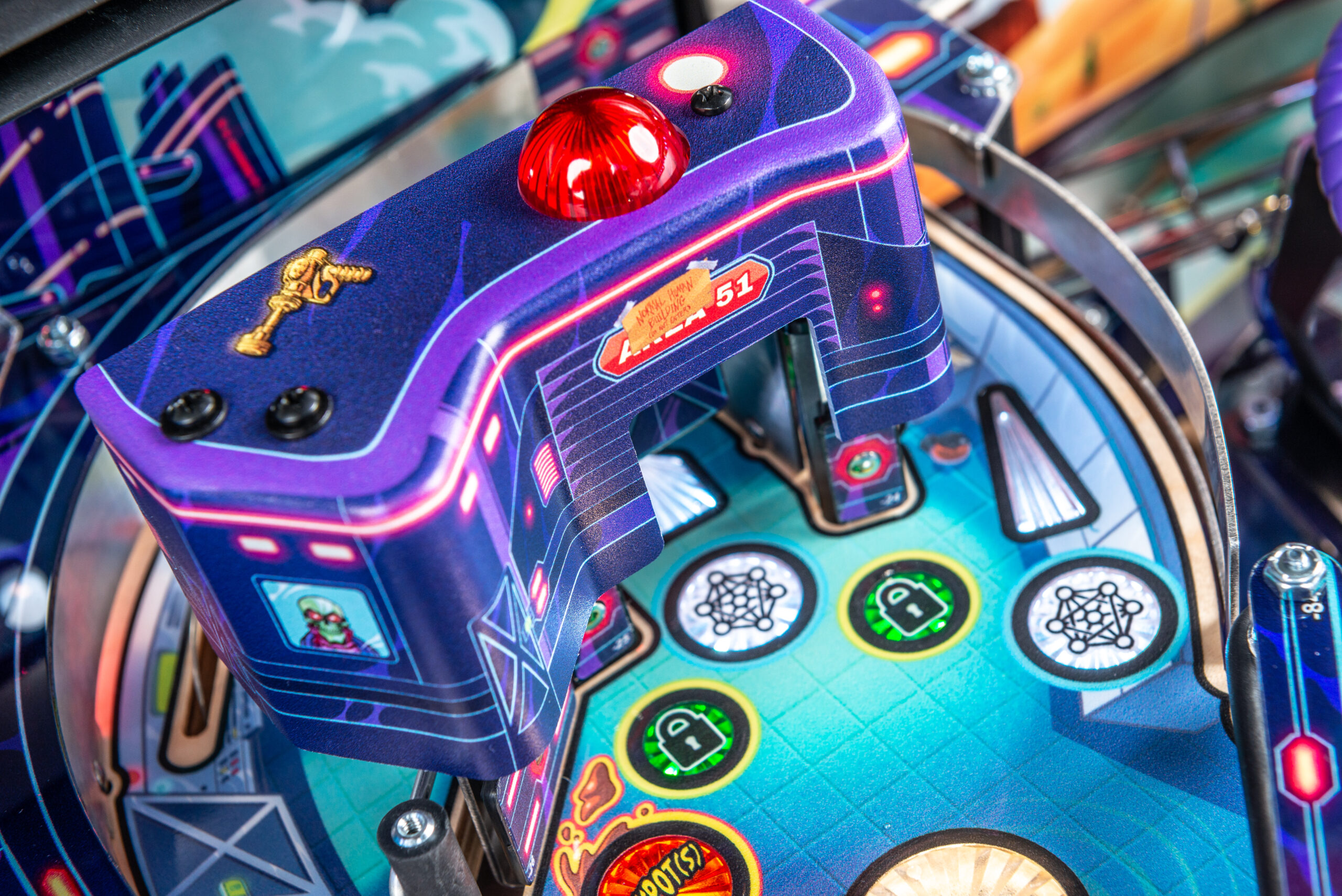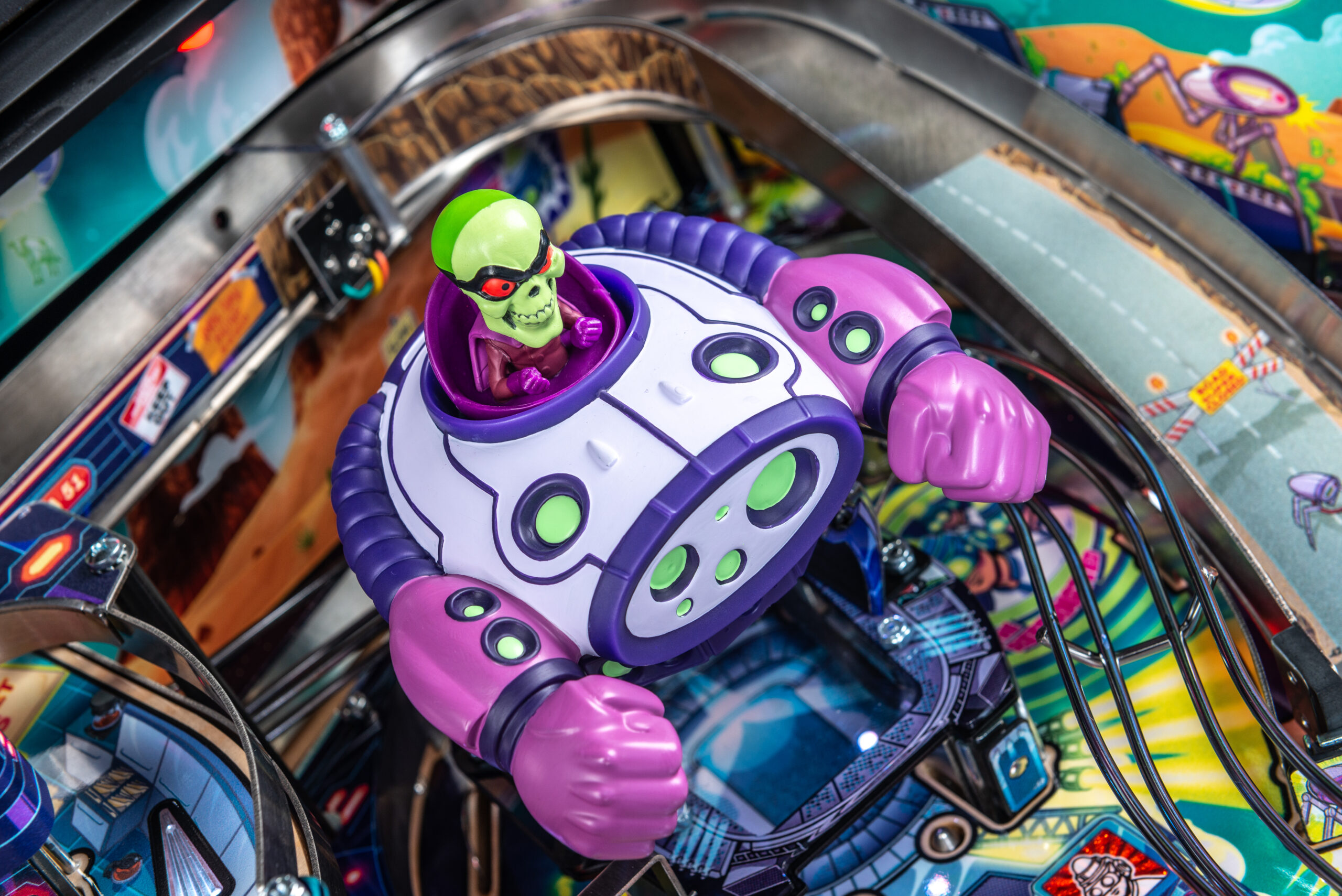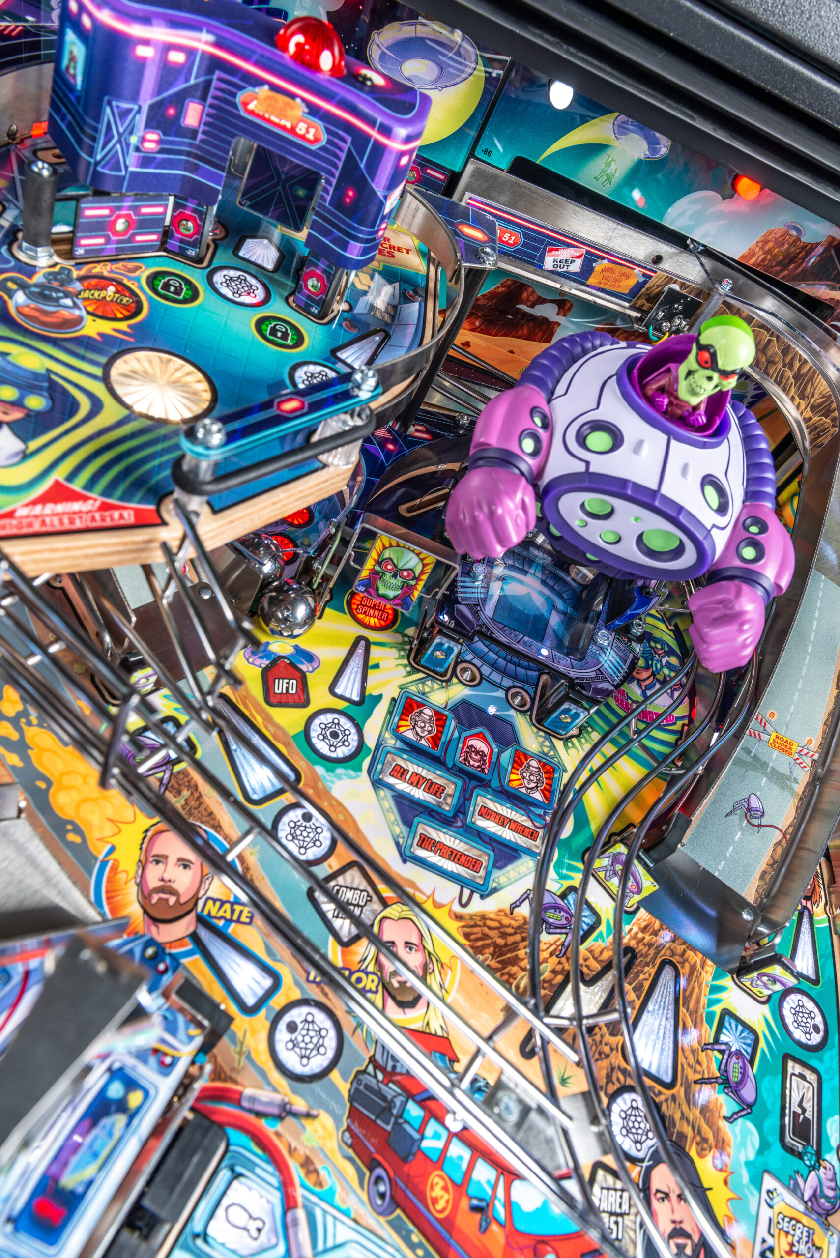 More than two years in the making and with creative input from the band’s own Dave Grohl, Nate Mendel, Pat Smear, Chris Shiflett, Rami Jaffee, and the late, great Taylor Hawkins, Stern’s Foo Fighters is a top-shelf pinball machine—and so much more. An entire new universe has been developed with jaw-dropping hand-drawn artwork and custom animations including “Foo Fighters Saturday Morning Action Time!”—a fictional TV series chronicling the band’s quest to save rock and roll… AND THE WORLD!  Join Foo Fighters on this rescue mission to thwart the evil, mysterious alien Overlord and his army of bots.  Search the Area 51 upper playfield to break into and unleash pinball chaos.  Jump in the van for a righteous tour of duty to save humanity from extinction and let rock rule!