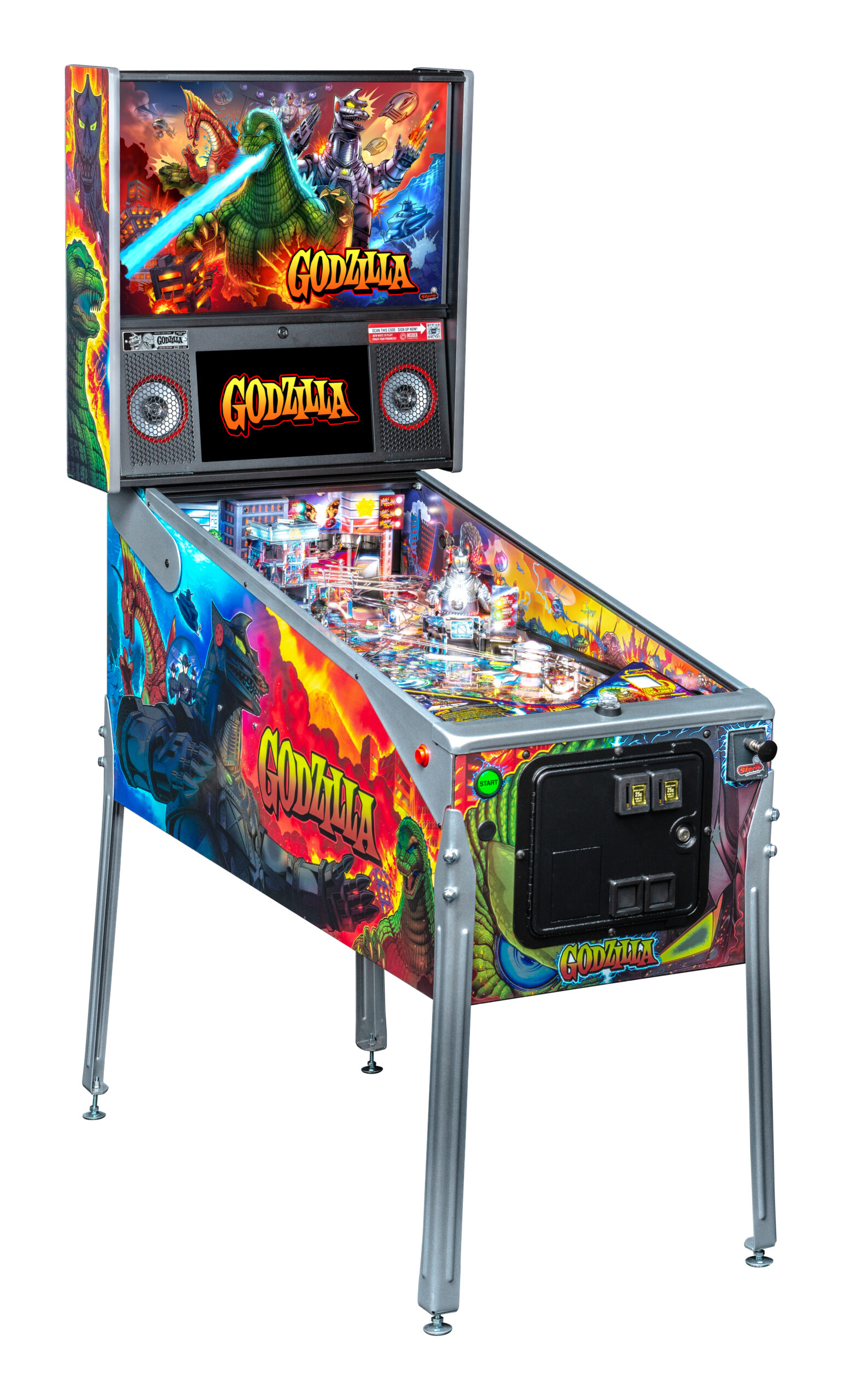 Godzilla pinball machines also debut Stern’s Insider Connected system, which includes a QR code reader on the bottom arch that enables players to interact with the game and this new network in a variety of ways. Stern Insider Connected provides new entertainment and player engagement features and an operator focused tool set to drive location play and remotely manage every aspect of the machines. Insider Connected goes live with the launch of Godzilla, with the full scope of features scheduled for roll out over the next year.