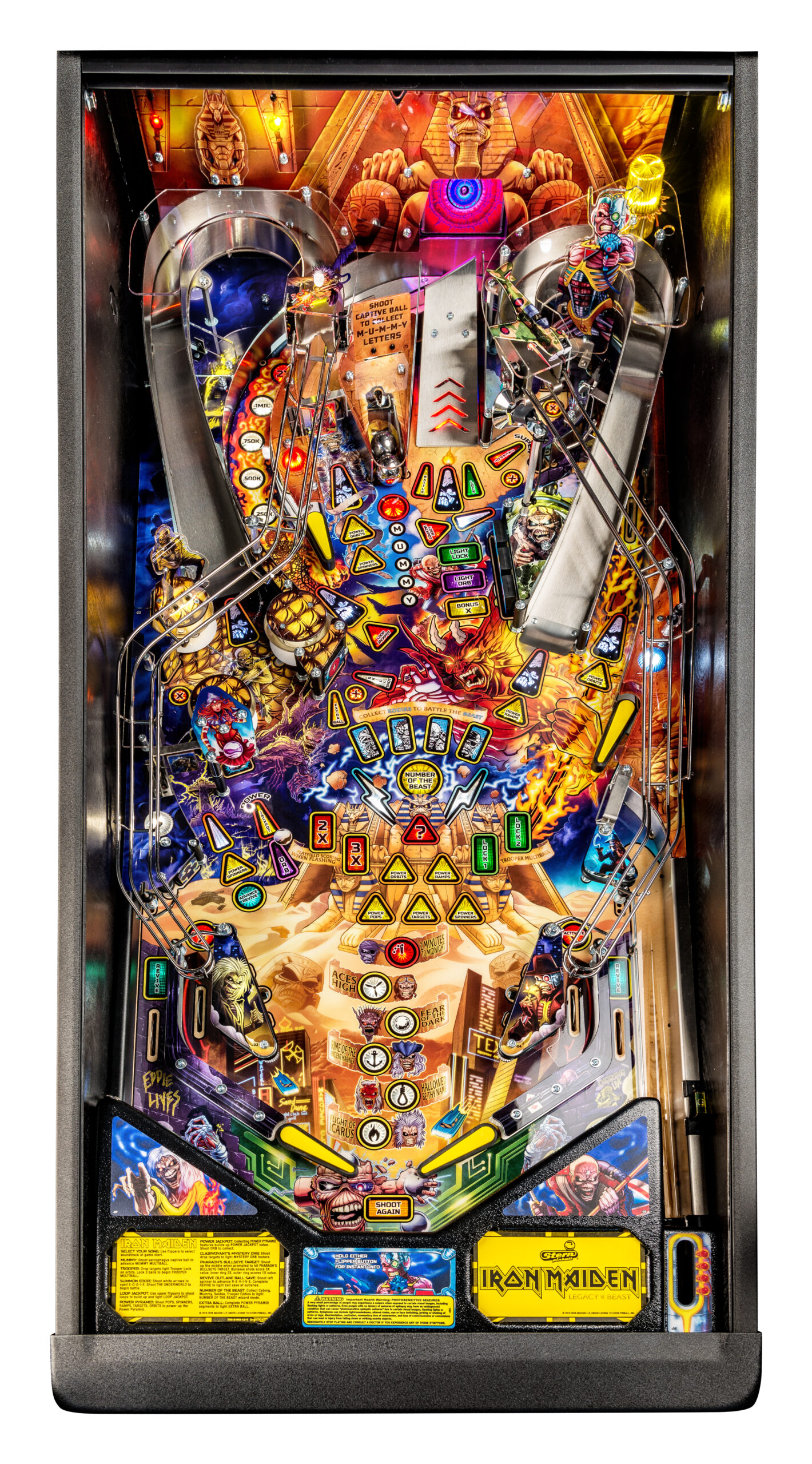 The Iron Maiden pinball machines aim to reflect the same excitement, energy, and experience of a live Iron Maiden concert. Players will immerse themselves in an interactive Iron Maiden universe transforming into various forms of Eddie, the band’s legendary mascot. Players, as Eddie, will embark on a quest to defeat the Beast and his minions across the Legacy of the Beast mobile game and comic book world. Iron Maiden pinball entertains with an amazing array of modern and classic features, making it suitable for all skill levels.