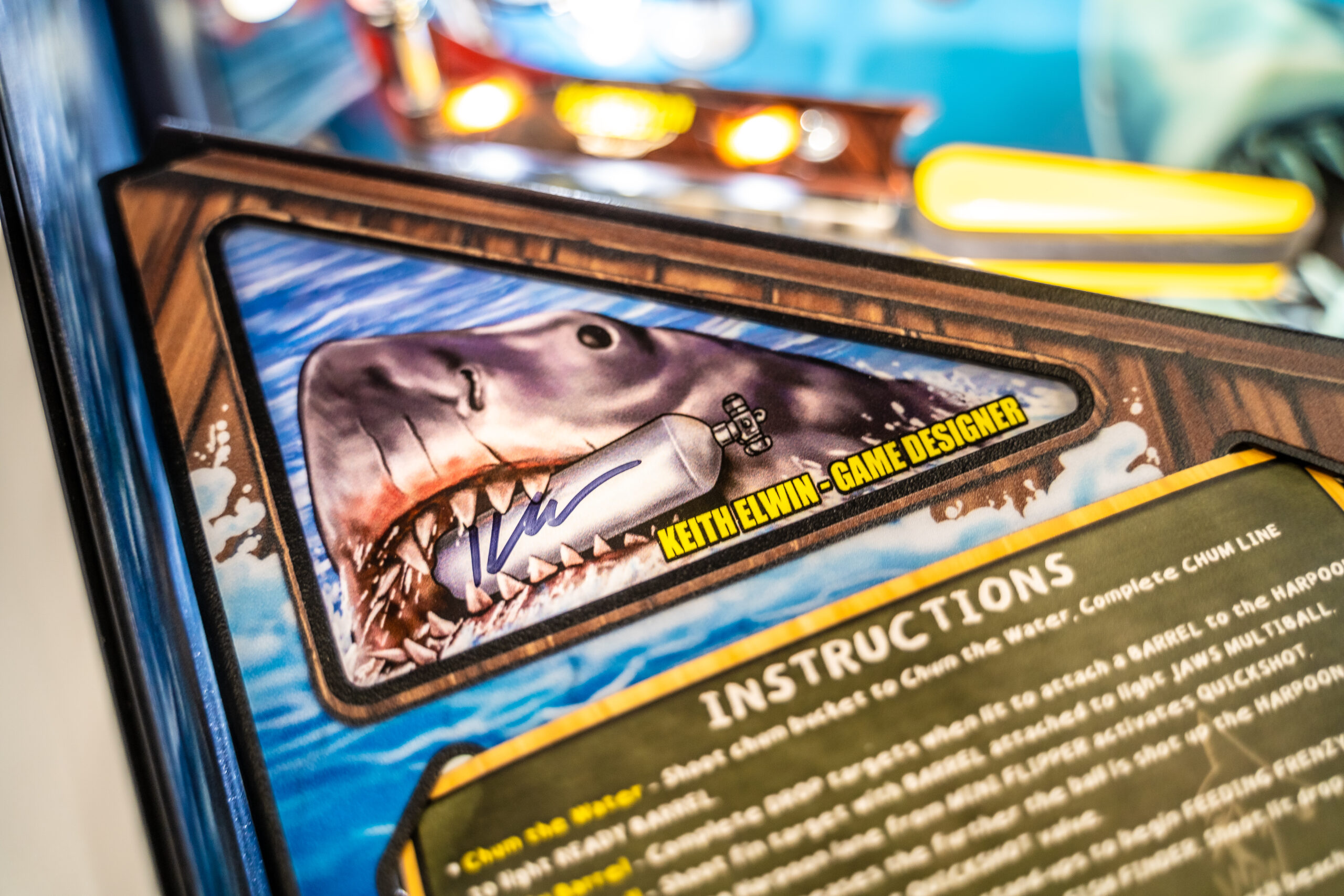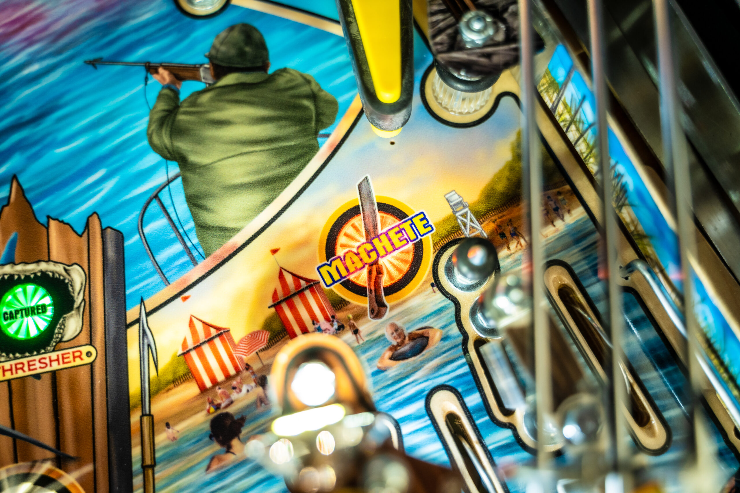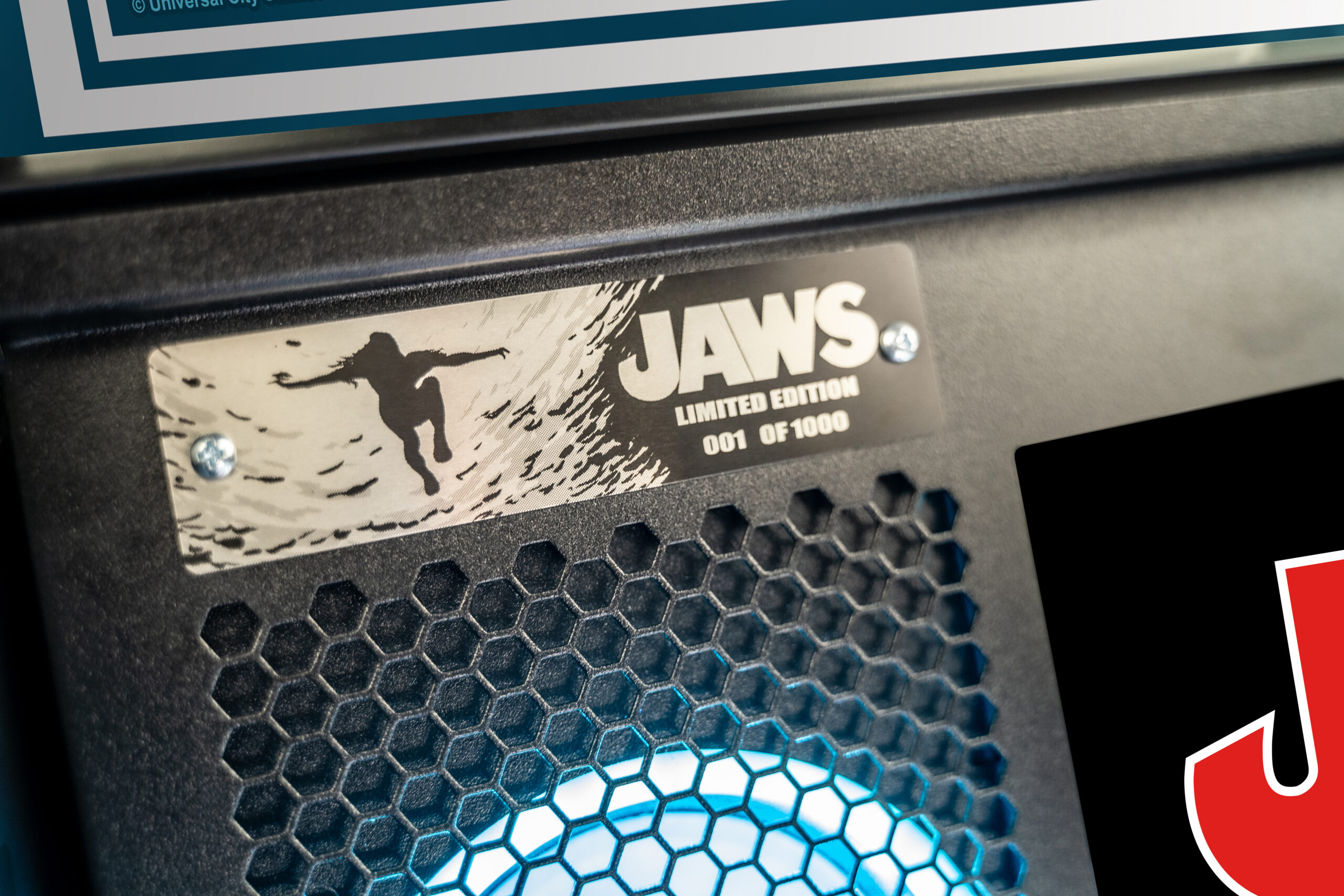 Limited to 1,000 games globally, the highly collectible Limited Edition model includes a full-color mirrored backglass based on the iconic JAWS movie poster by world-renowned artist Roger Kastel, full-color reflective foil high-definition cabinet decal with hand-drawn artwork by Michael Barnard, exclusive custom “Great White” powder-coated pinball armor, Speaker Expression Lighting with JAWS-themed game effects (sonar, water, blood in the water, and more!), a custom designer-autographed bottom arch, exclusive inside art blades, upgraded audio system, anti-reflection pinball playfield glass, shaker motor, a sequentially numbered plaque, and a Certificate of Authenticity signed by Stern President & CEO Seth Davis and Chairman & Founder Gary Stern.