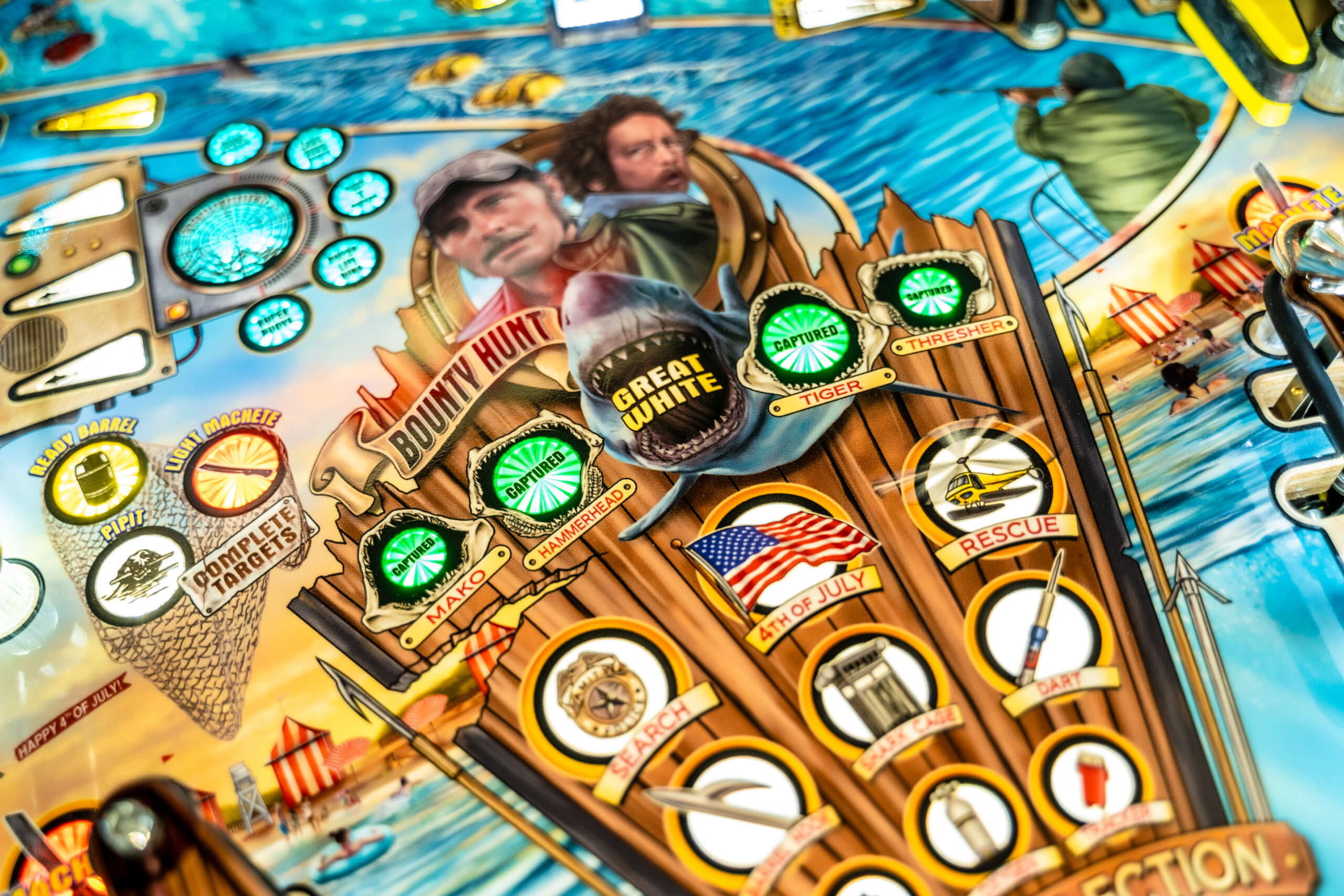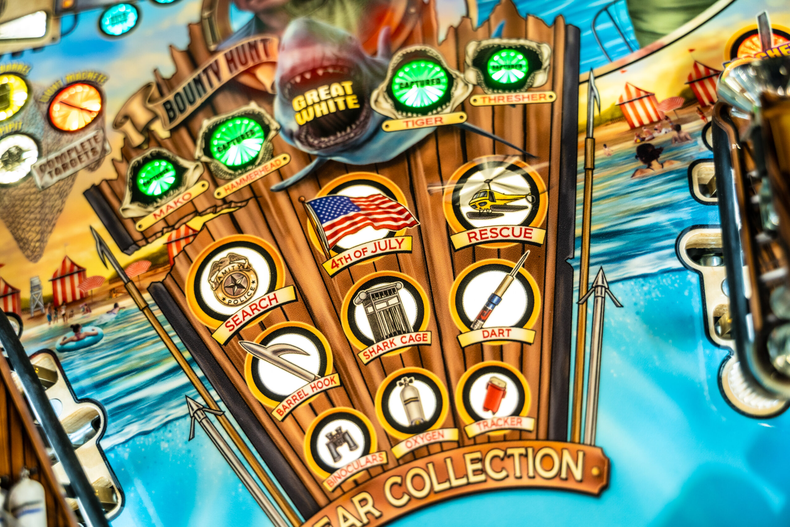 JAWS pinball games include Stern’s award-winning Insider Connected™ system, which enables players to interact with the game and a global network of players in multiple ways. Through Insider Connected, players can track progress, hunt Achievements, take on special JAWS Quests, and work on their lifetime Bounty Hunter rank.
