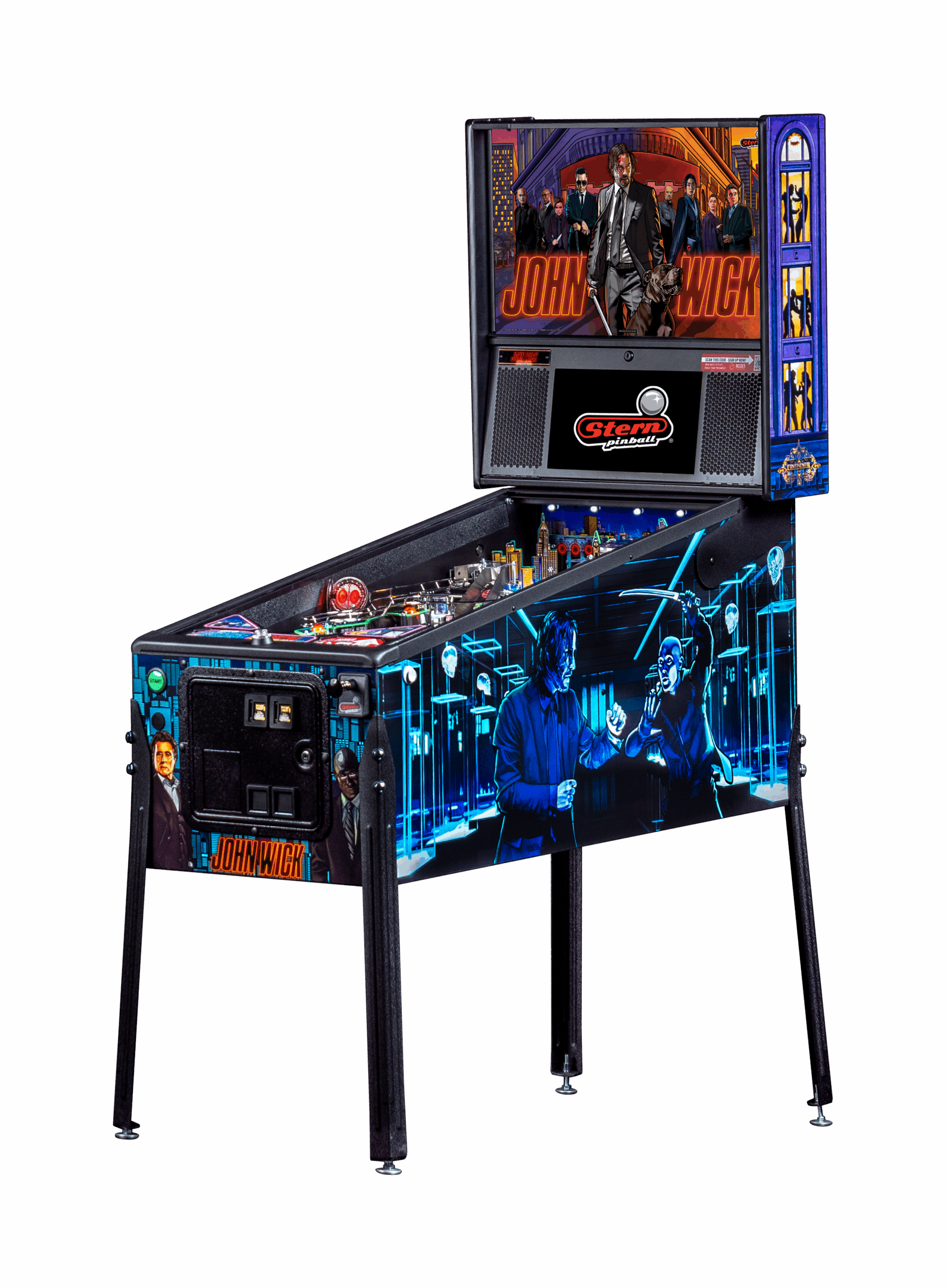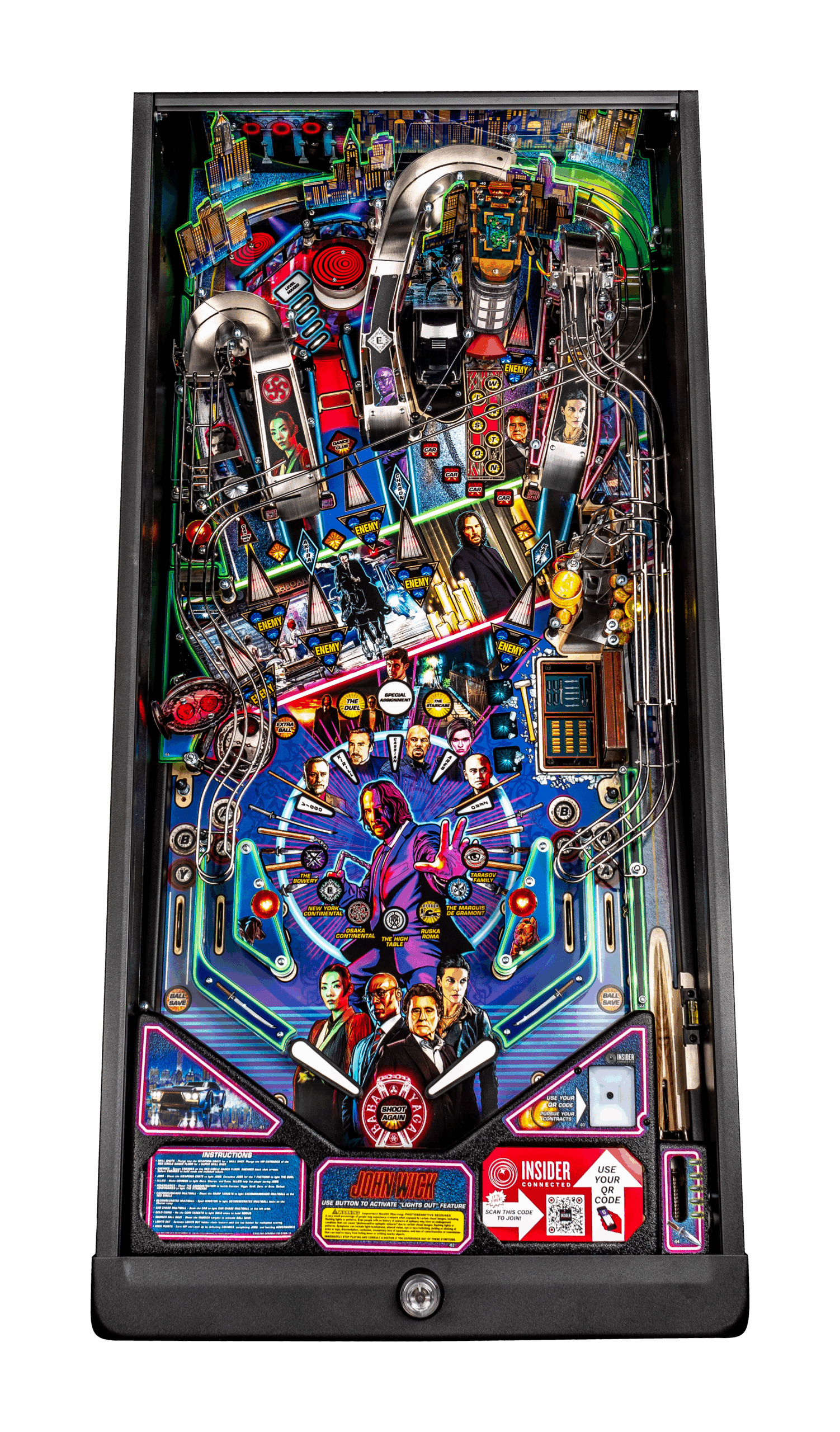 John Wick pinball games include Stern’s award-winning Insider Connected™ system, which enables players to interact with the game and a global network of players in multiple ways.  Through Insider Connected, players can track progress, earn new game-specific Achievements, take on special John Wick Quests and complete Faction Contracts to increase their Assassin ranking.