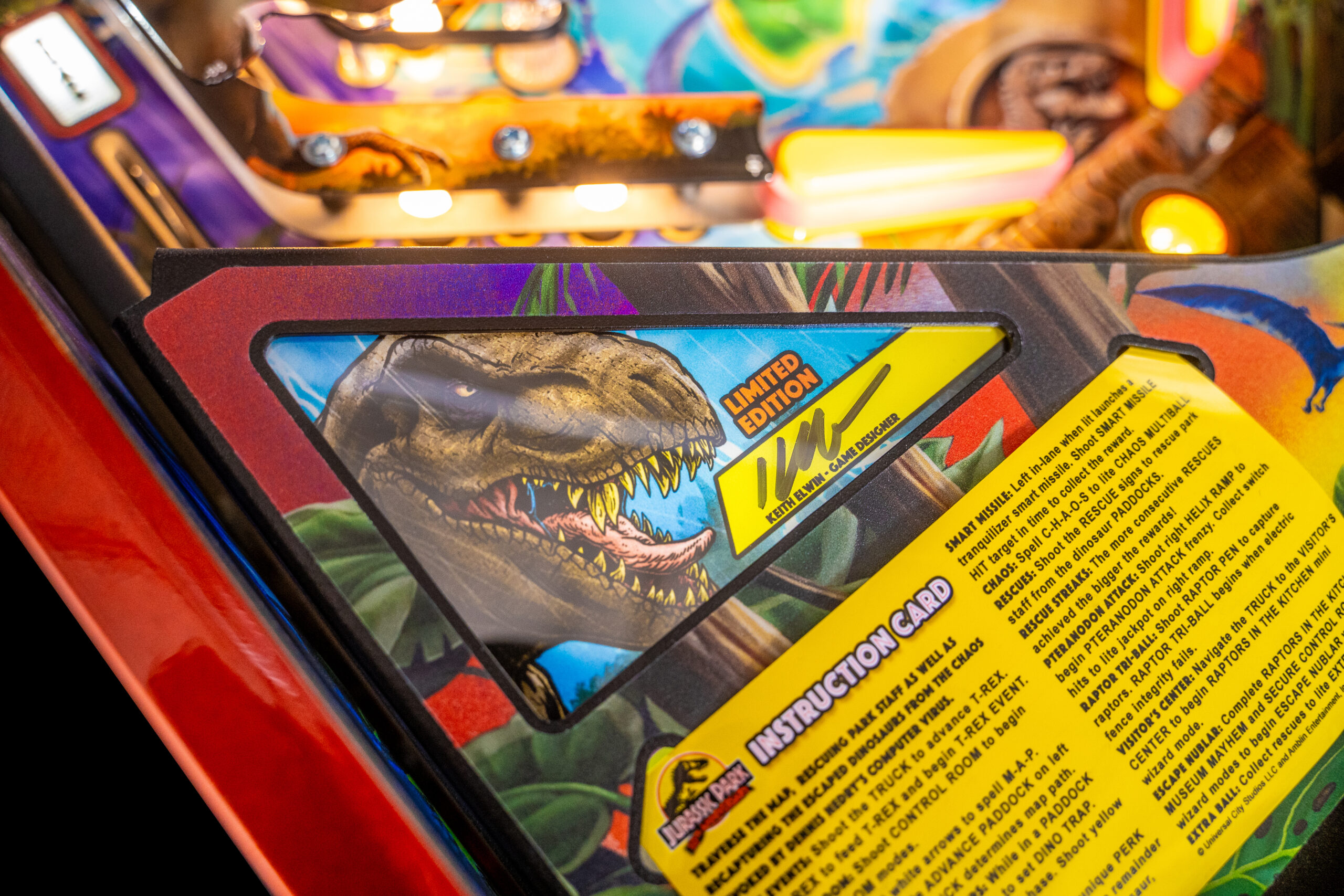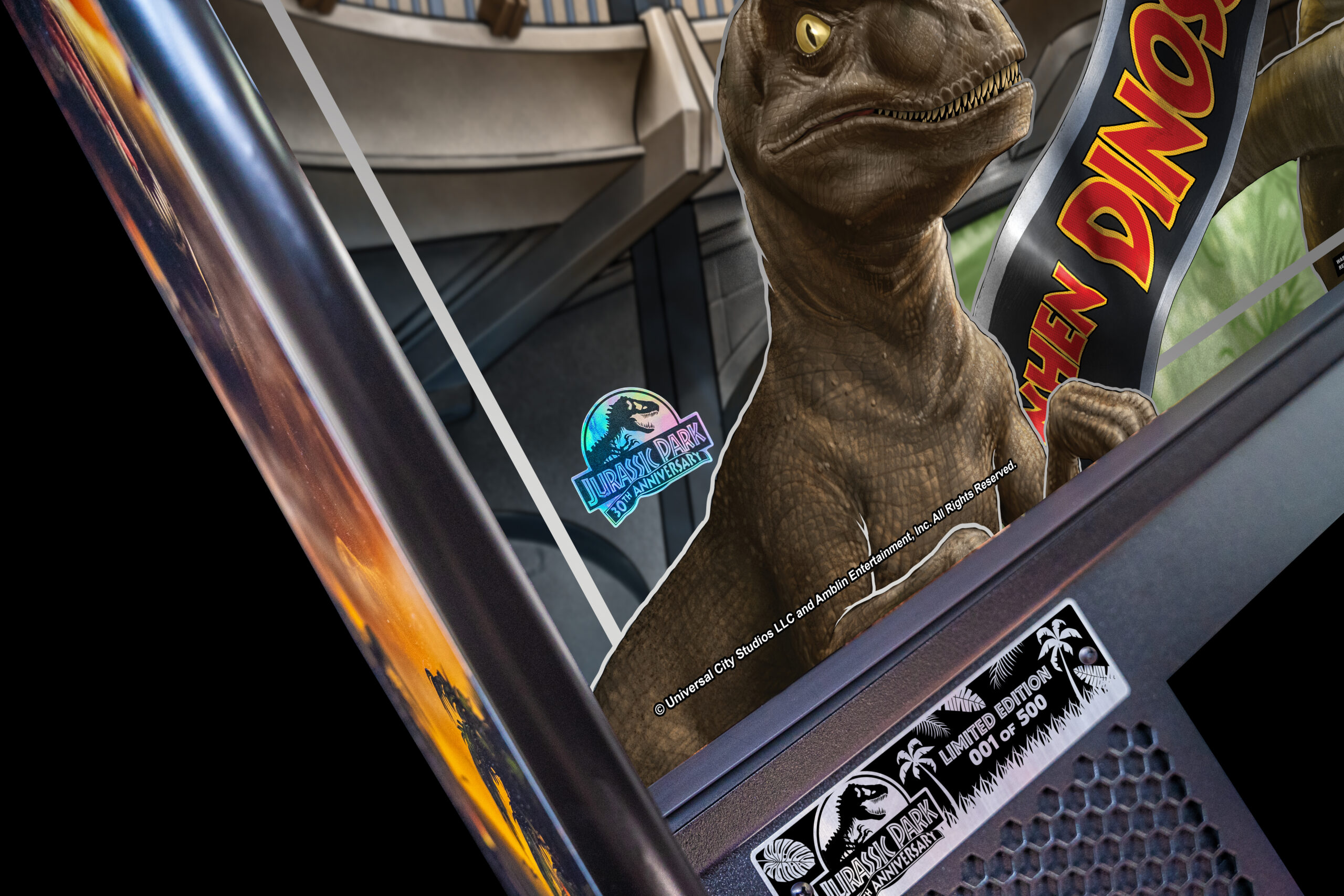 For the ultimate Jurassic Park fan, we are pleased to announce a special 30th Anniversary Edition version of Jurassic Park Pinball Machine, featuring a brand-new exterior art package, full-color mirrored backglass, “Illusion Copper” powder-coated pinball armor, a custom designer-autographed bottom arch, inside art blades, upgraded audio system, anti-reflection pinball playfield glass, shaker motor, a sequentially numbered plaque, and a Certificate of Authenticity. This release will be limited to 500 units globally, serving as a special collectors’ item for dedicated fans of the franchise and pinball aficionados alike.