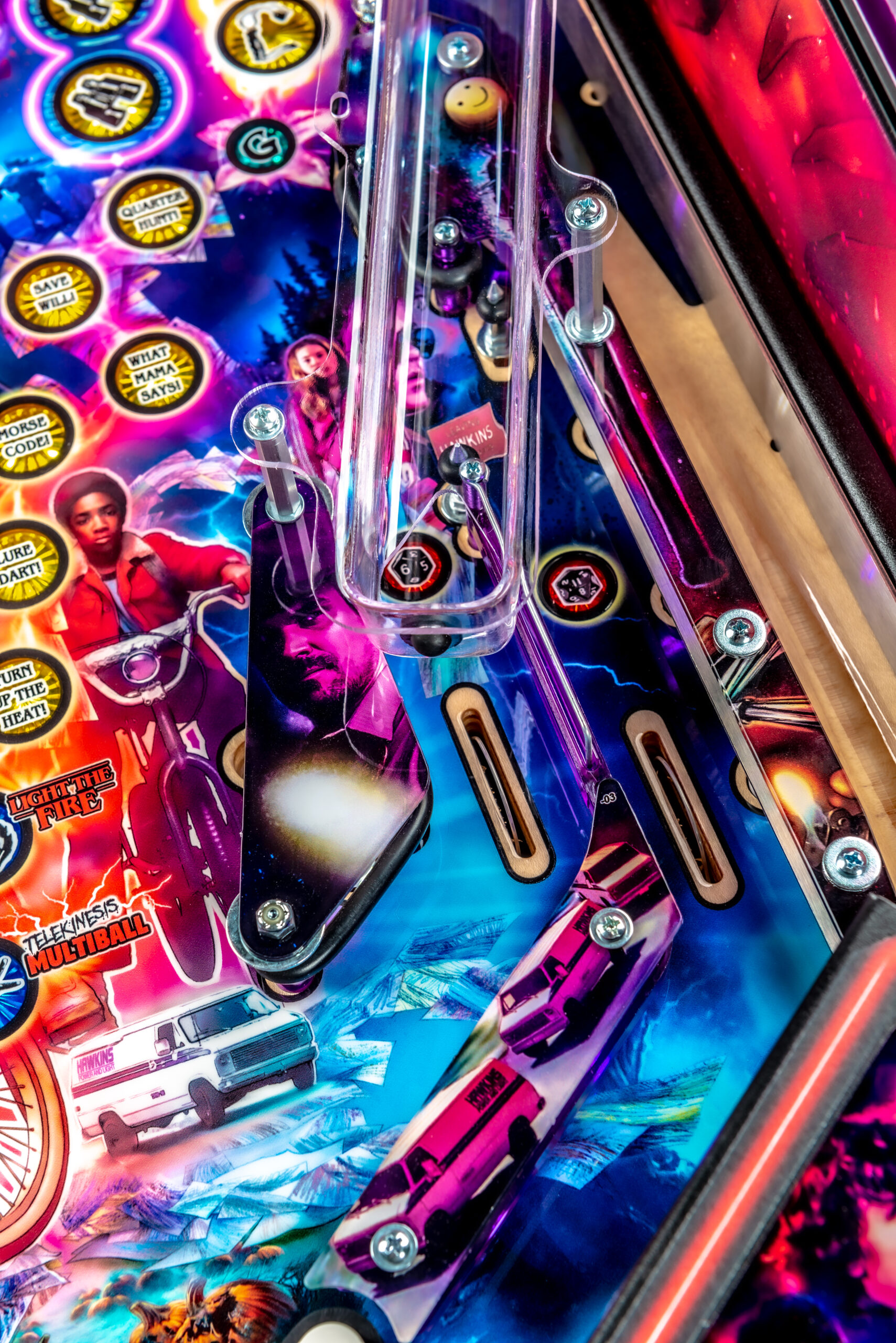 Experience the terrifying forces in Hawkins, Indiana that turn this small town “upside down” with supernatural elements, strange sightings, and government secrets. Stranger Things pinball machines will immerse players in a search to unravel the extraordinary mysteries and secret government experiments taking place at the Hawkins National Laboratory. The gameplay focuses on unlocking the hidden meanings of supernatural events occurring in and around the town, including the appearance of a girl known as “Eleven” with telekinetic abilities. The ball is wild as Mike, Lucas, Dustin, Will, Joyce, and Police Chief Jim Hopper help Eleven close the dimensional gate.